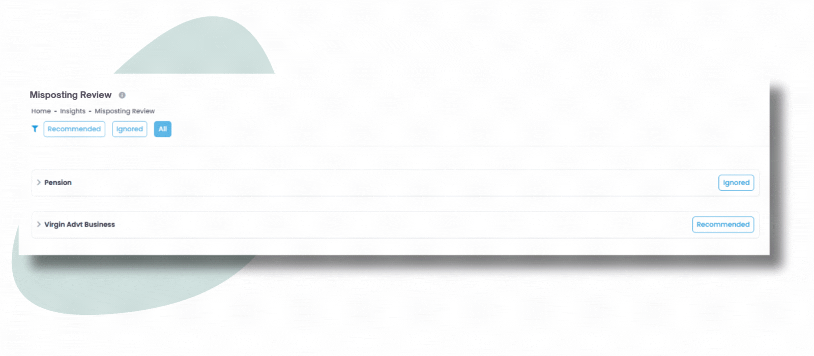 Misposting Review suggests reallocations of transactions across various Profit and loss items. This feature automatically identifies mispostings and recommends reallocation ideas within Profit & Loss items, facilitating precise financial reporting without manual intensive scrutiny.